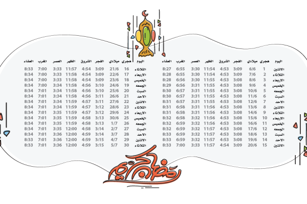 امساكية رمضان مفتوح قابل للتعديل