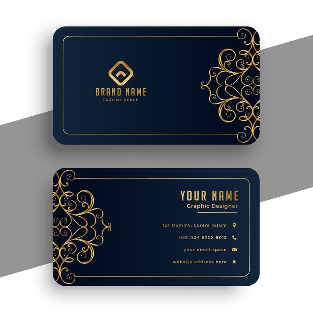 بطاقة عمل سوداء وذهبية مميزة مزخرفة Free Vector