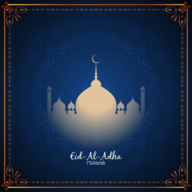 Beautiful eid-al-adha mubarak religious blue background Free Vector