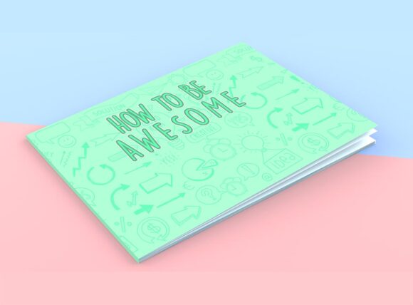 A 1920 x 1122 px sized clean mockup of a floating booklet. Completely layered PSD with smart object.