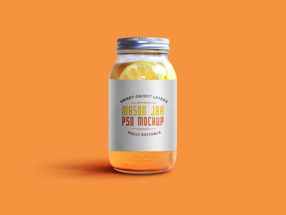 A layered PSD (including a smart object) showing the mockup of a mason jar. The dimensions are 2500 × 2000 px.
