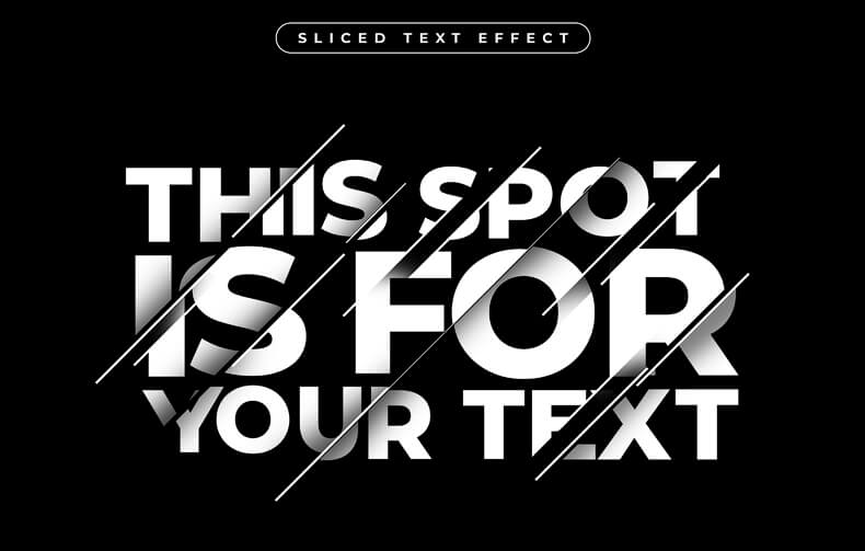 Dynamic, stylish text effect for creating creative cut lettering. This kind of text will give it movement, dynamics and will look very fluid.