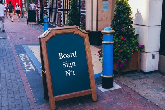 Two photo-realistic and high-res mockups of hip signs. The PSDs measure 5472 x 3648 px at 300 dpi and are print-ready.