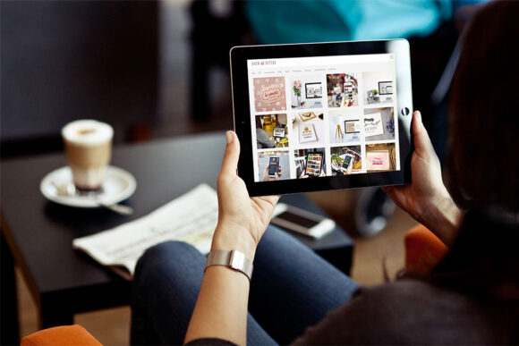 Living room scene with coffee table: photo-realistic mockup PSD file with smart object.